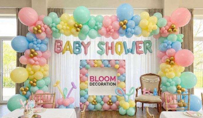 Welcome the newest member with joy! Our elegant baby shower decoration features stunning balloon arches and cute details to make this milestone truly unforgettable for the expecting mother.
